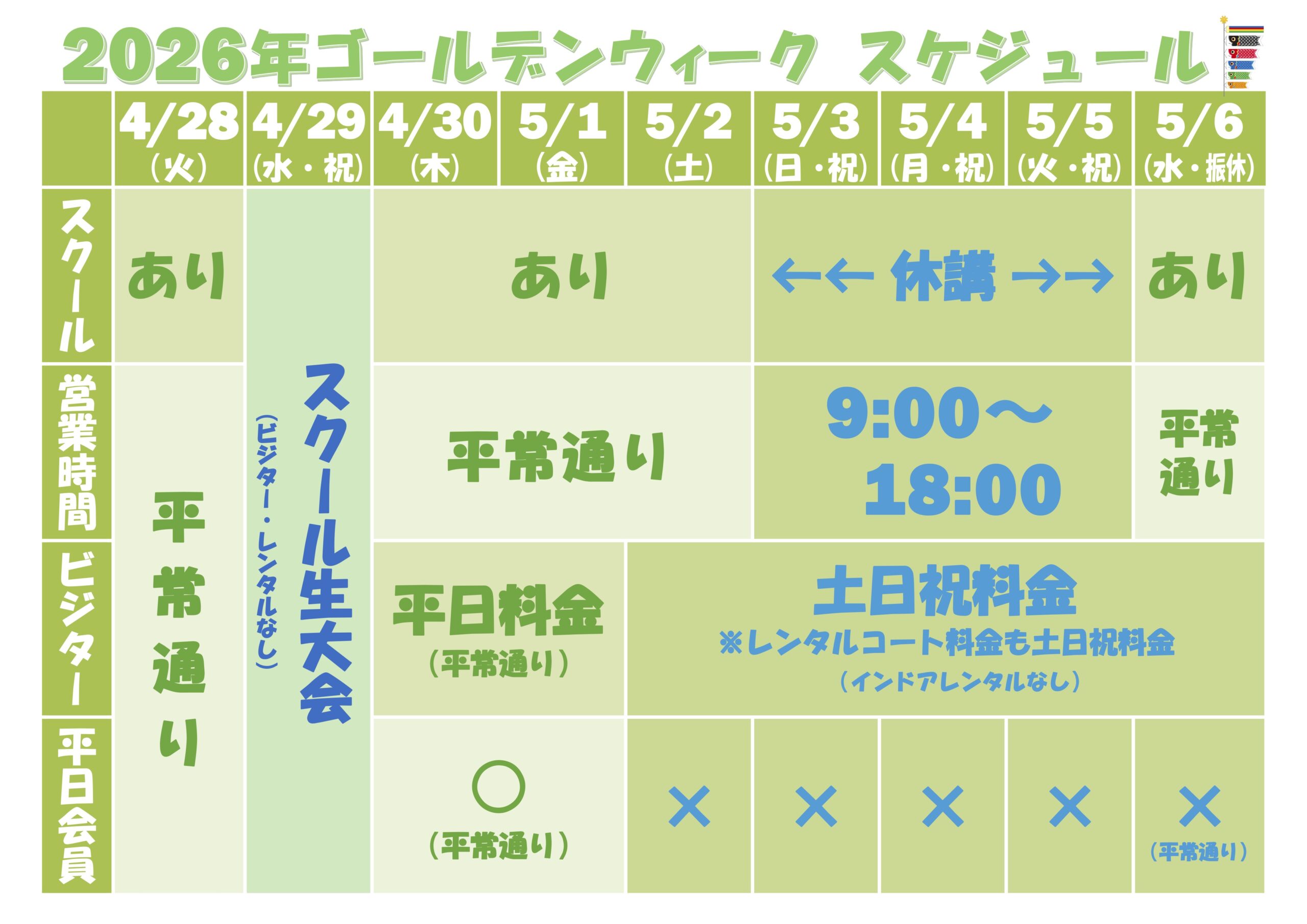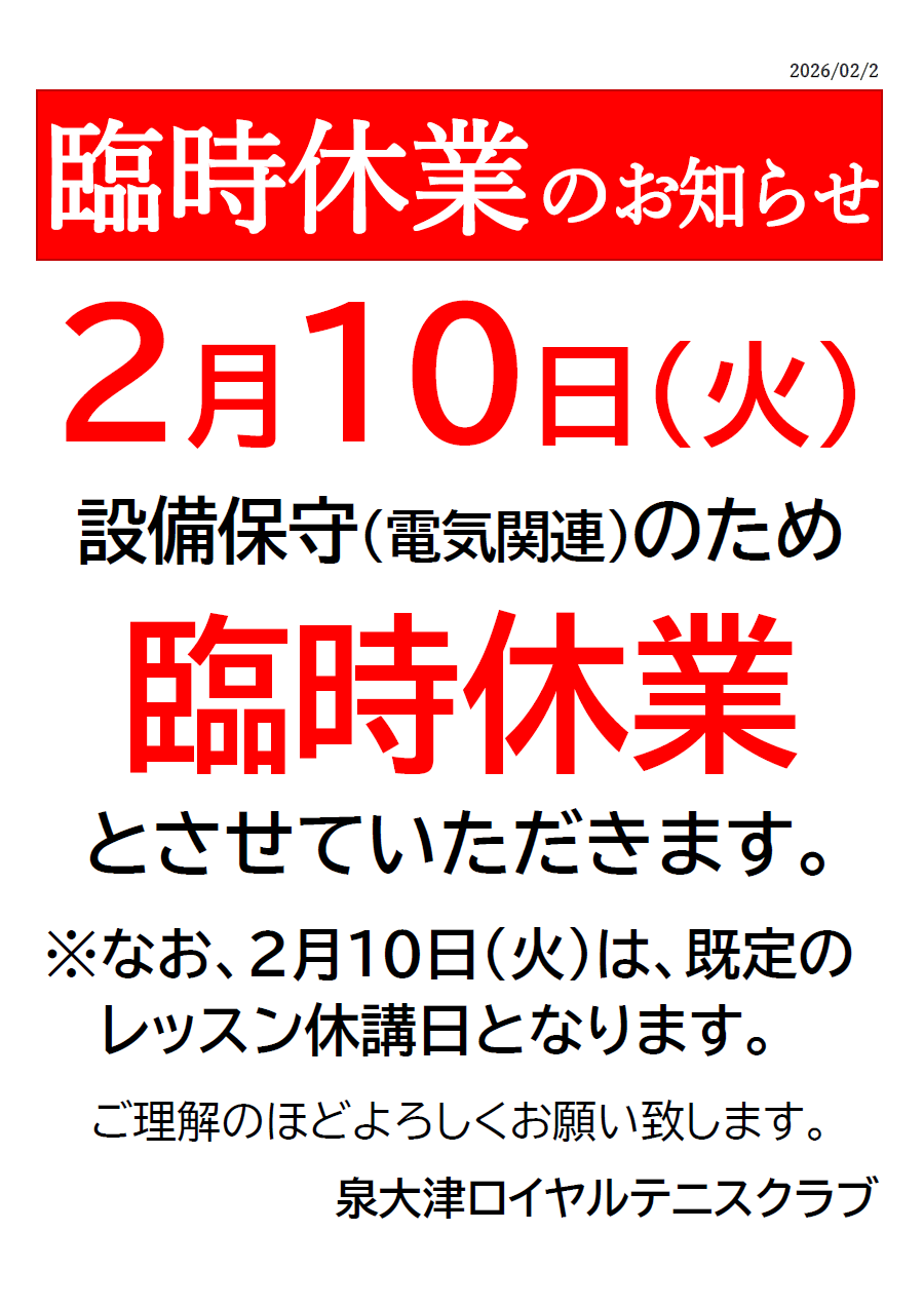 コートの面貸し(レンタルコート)のご予約・ご利用は、当クラブ在籍のスクール生、会員の方を対象とさせていただいております。申し訳ありませんが、外部の方の面貸しのご利用は受付しておりませんので、あらかじめご了承ください。