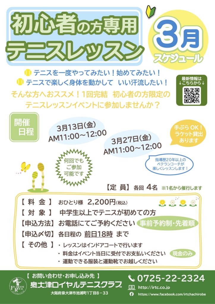 3/18更新【初心者の方向け】テニスレッスンイベント最新スケジュール